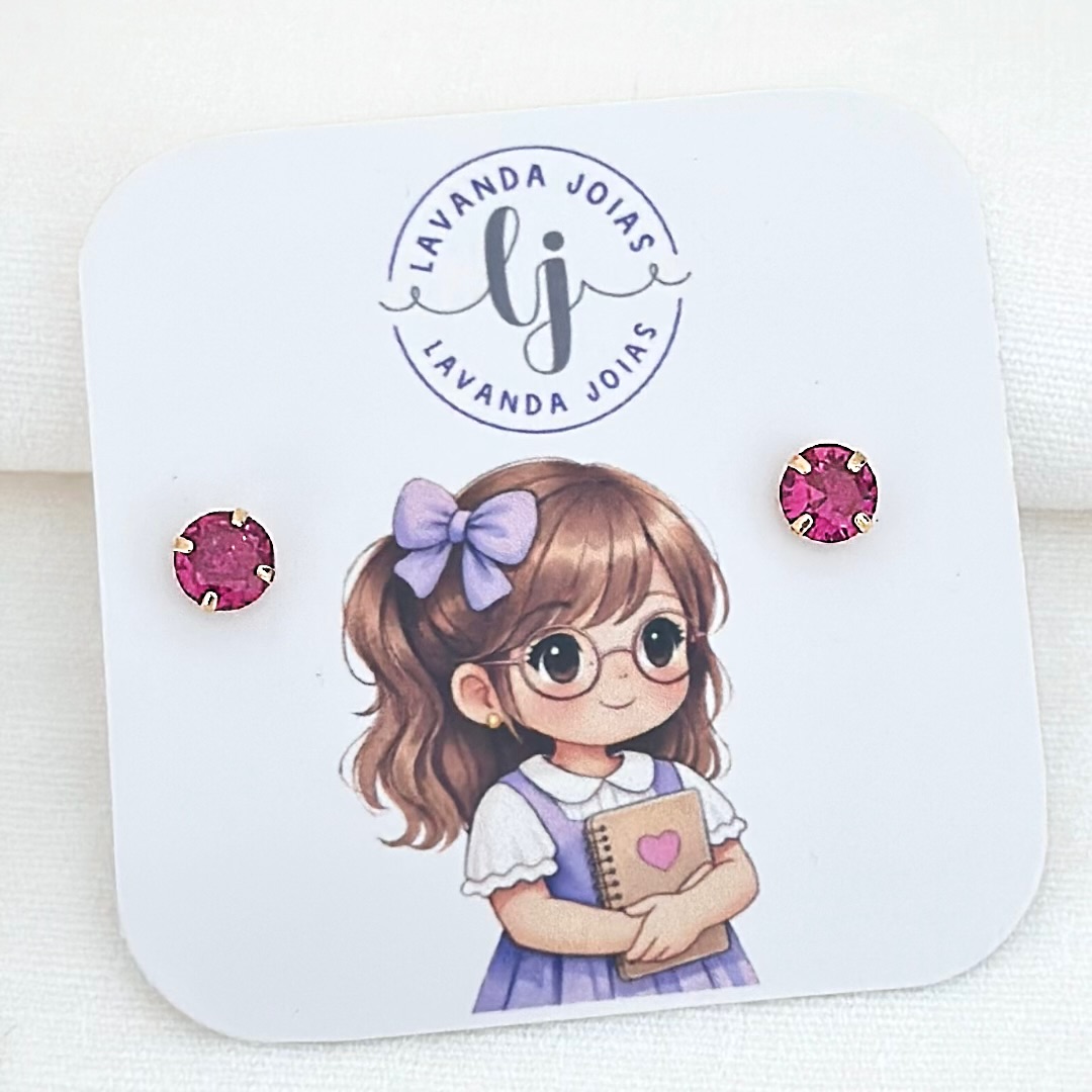 O brinco ponto de luz pink traz um toque de cor e brilho delicado para acompanhar a rotina escolar com leveza e conforto. Seu tom vibrante, na medida certa, ilumina o visual sem exageros, sendo perfeito para o uso diário das crianças.
