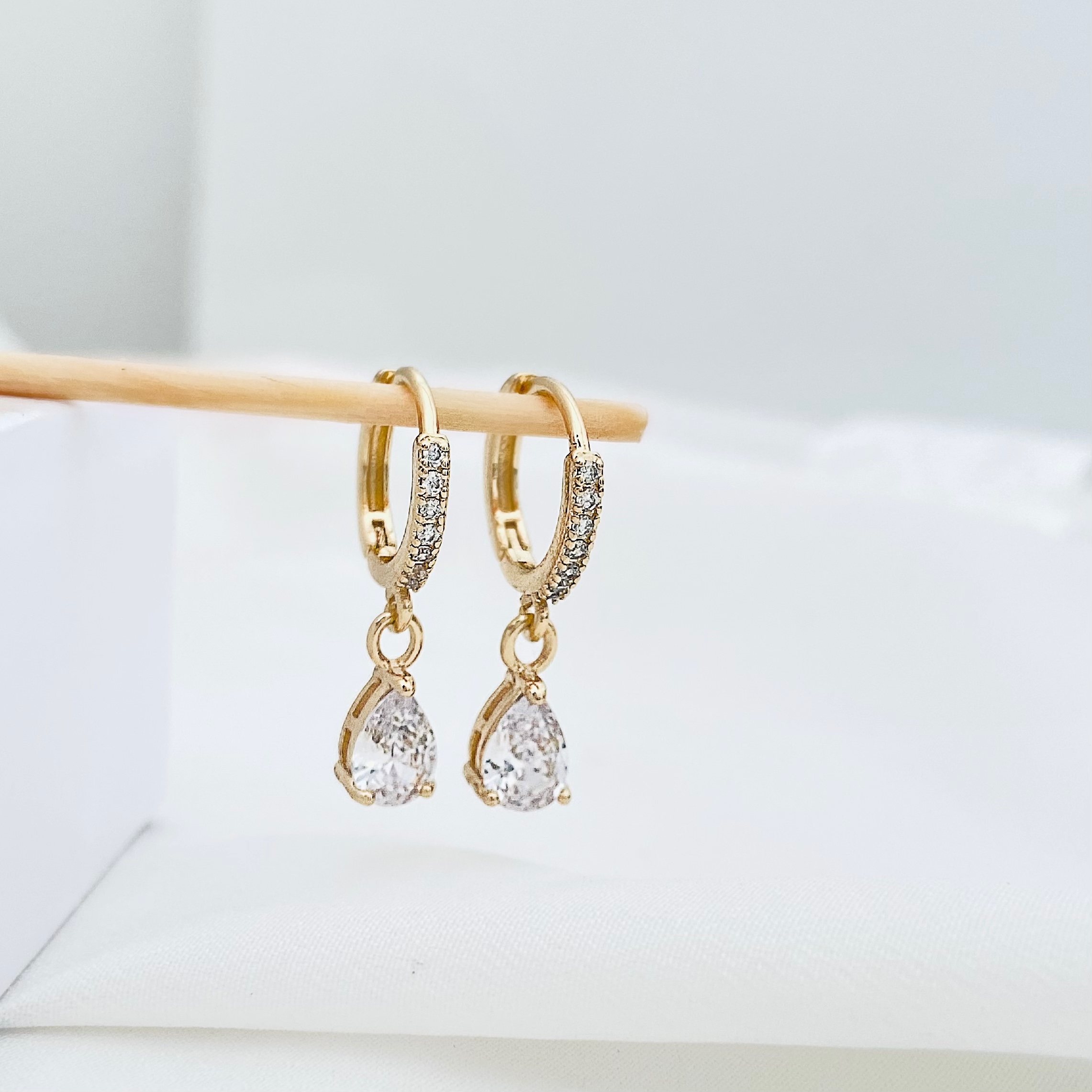 - Caixa personalizada com Brinco argola cravejada Gota;