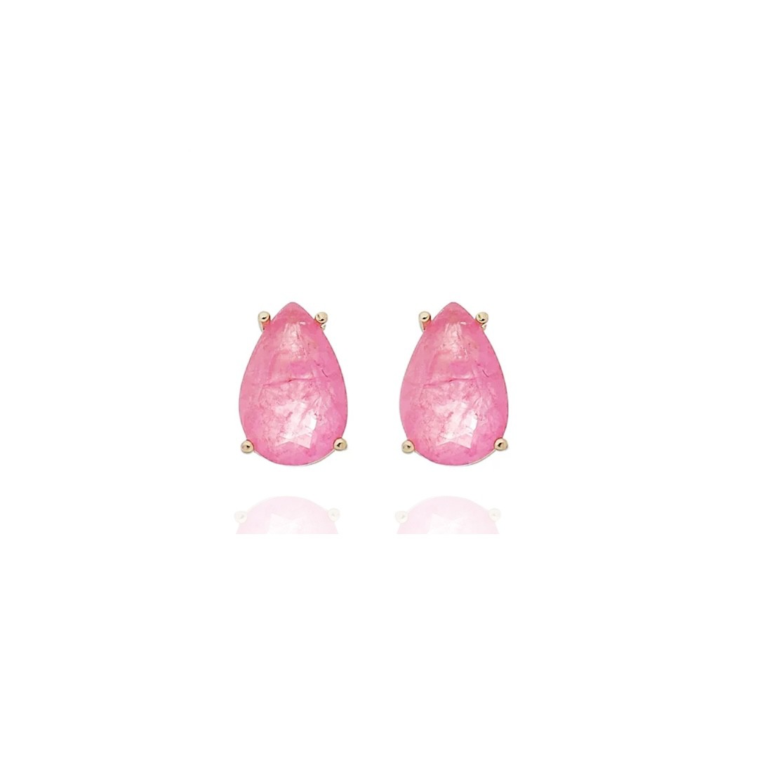 - Brinco Gota Pedra Fusion Pink em banho 18k.